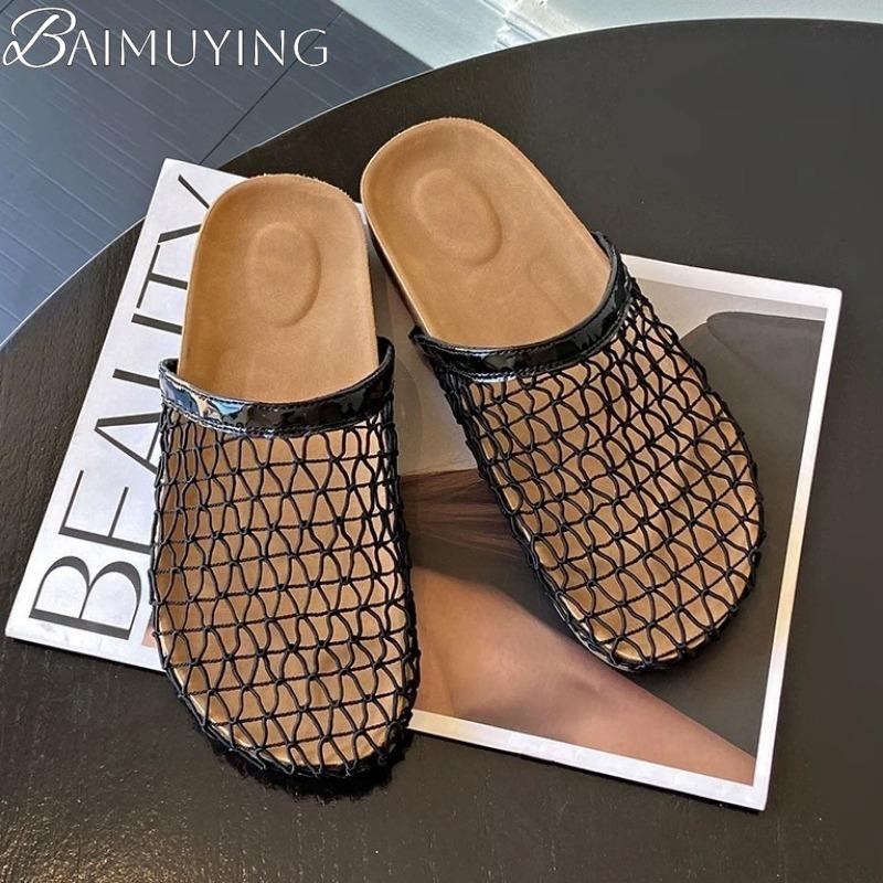 Fashion Hollow Mesh Mules Slippers Women Casual Shoes Flat Sandals Summer 2025 Trend Beach Platform Woman Slides Comfort Sandalias Mujer