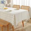 Rustic Embroidery Table Cloth, Cotton Linen Stripe Tassel Tablecloth Antifouling Dust Proof Table Cover For Kitchen Dining Decor