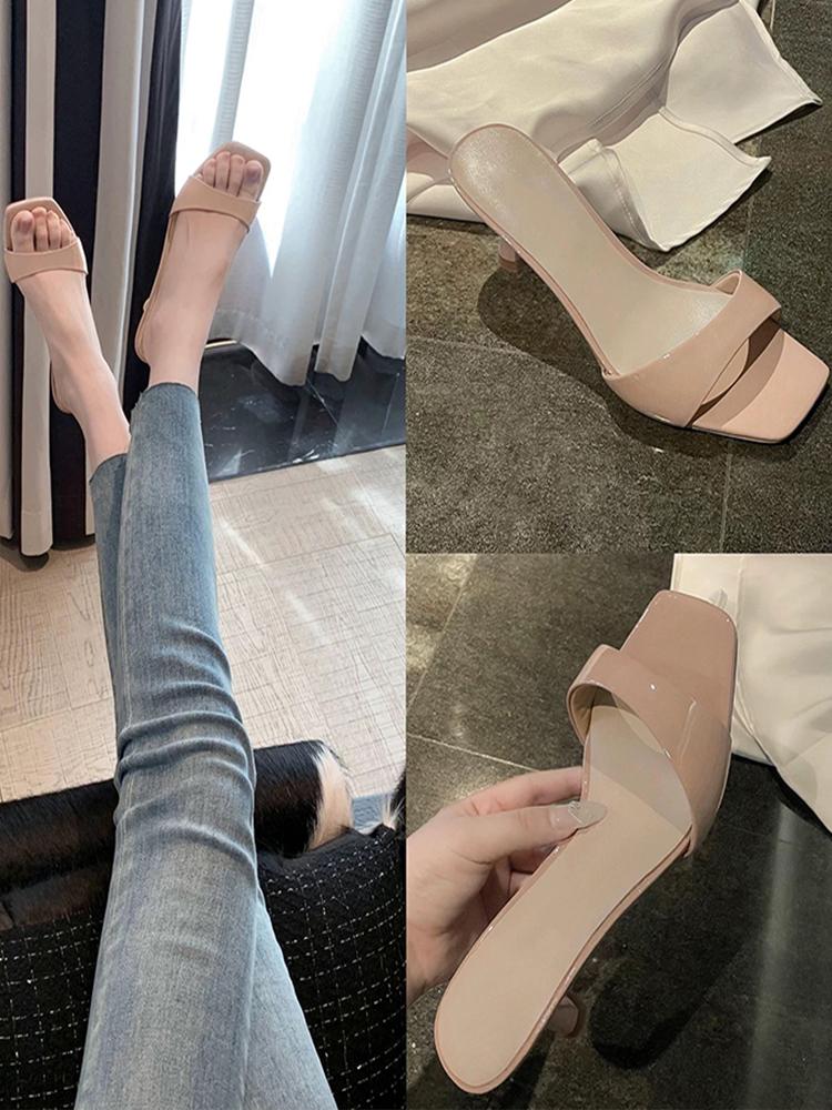 Fashion 2025 New Beautiful Naked High Heels for Women's Summer Outerwear, Square Headed and Open Toed Sandals, One Straw Cool Slippers