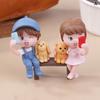 2Pcs/Pair Cute Lovers Taking Selfies On A Stool Cake Decoration Car Ornament Couple Figurines Miniature Craft Fairy Garden Decor
