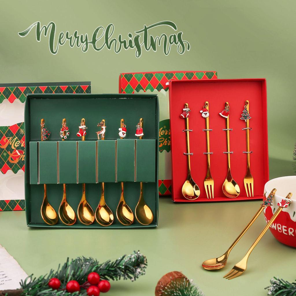 Christmas Stainless Steel Spoon and Fork Gift Set with Cute Pendant