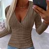 Women's Casual Fashion Button Knitted Pullover V-Neck Slim Fit Long Sleeve Top