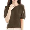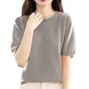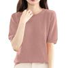 Women's Fashion Wool Knit Half Sleeve Round Neck Solid Colour Bottom Shirt Knitted T-Shirt Top