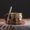 Fashion Light Luxury Style Kiln-changed Ceramic Coffee Cup Dehua Traditional Handmade Mug with Spoon Home Gift Creation