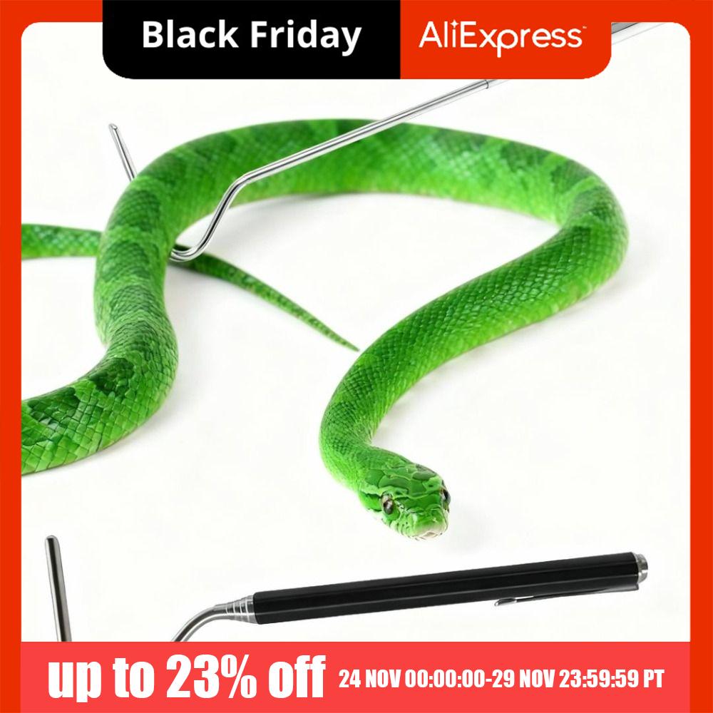 Adjustable Snake Hook Stainless Steel Long Handle Snake Catching Tool Rounded Head Non Slip Grip Reptile Catcher Amphibious