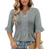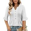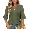 Women's Fashion Casual V-Neck Button-Front Pleated T-Shirt With Short Sleeves In Solid Color