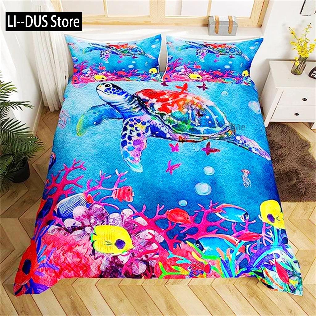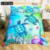Sea Turtle Duvet Cover Green Blue Ocean Bedding Set Colorful Underwater World For Kids Child Women Nautical Sea Animal Reptile
