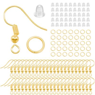 300pcs/Set Hypoallergenic Earring Hook Kit Mix-color Ear Wires Fish Hooks Open Jump Rings Earplugs For Earring Making Repair