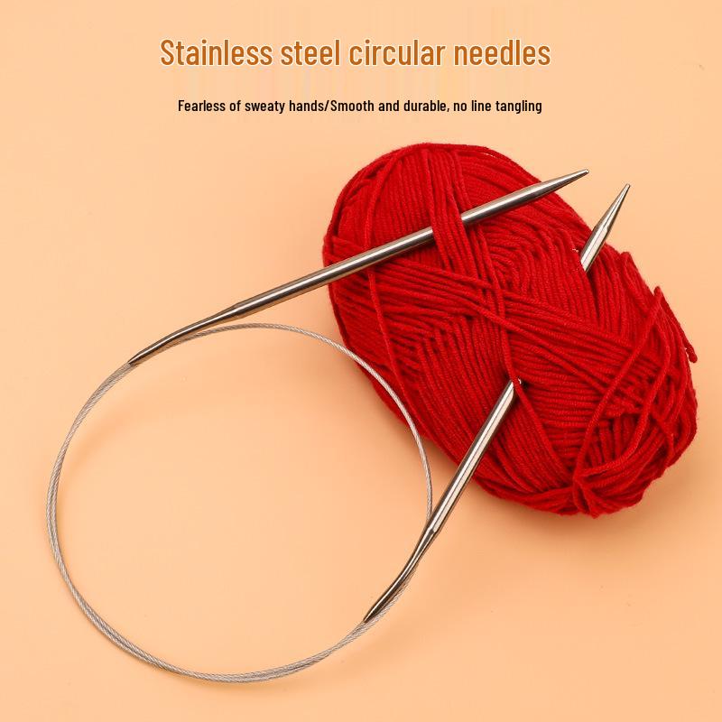 23cm Wool Knitting Circular Needle Set for Sweaters & Sleeves - Stainless Steel & Bamboo.