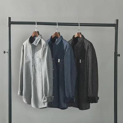 Japanese Style Classic Cotton Export Tail Goods Men Spring and Autumn Pure Cotton Stripes Loose Long Sleeve Shirt Outwear Men