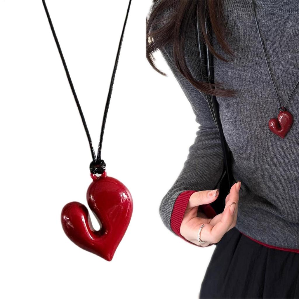 Sweater Chain Heart Fashion Irregular Metal Pendant Long Sweater Chain Minimalist Black Leather Rope Love Pendant Necklaces