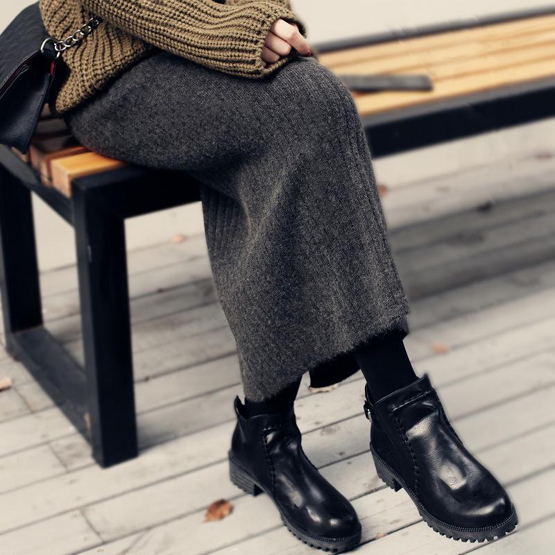 High-Waisted Knit Bodycon Skirt for Autumn/Winter 2025 - European & American Style, Mid-Length with Slit.