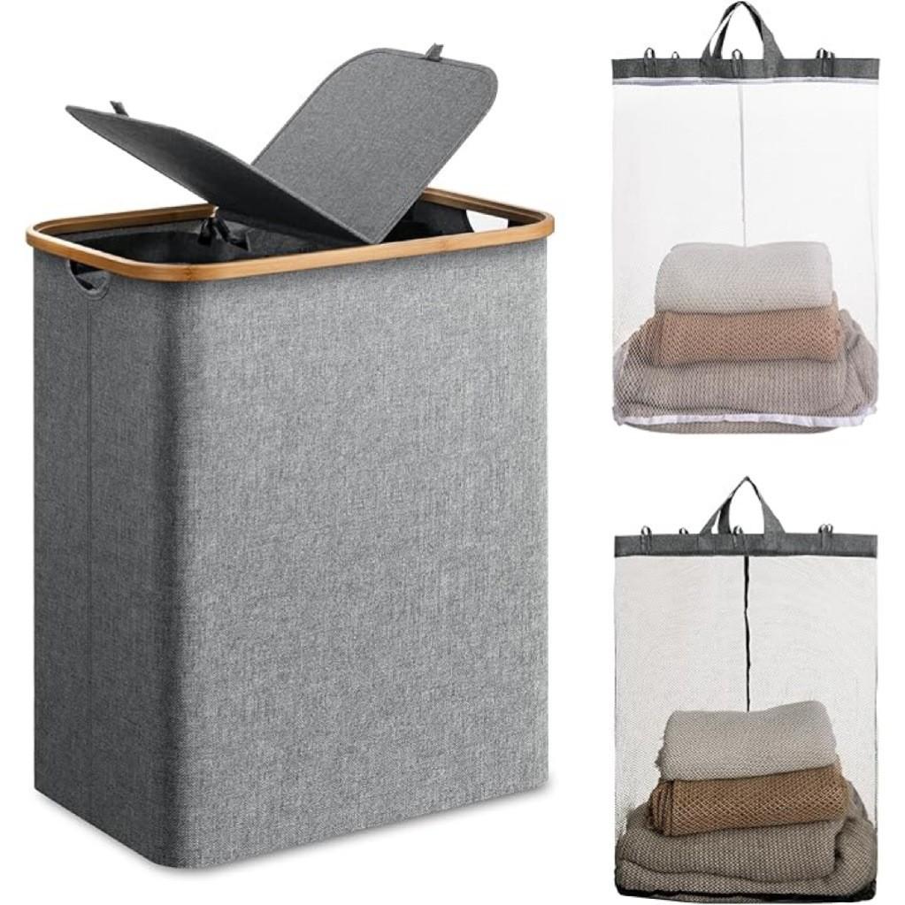 Foldable Dirty Laundry Basket with Lid and Inner Bag for Bedroom or Bathroom - Large Capacity.