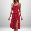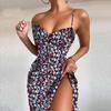 2025 Spring European and American Women's Sexy Print Lace-Up Slit Spaghetti Strap Dress