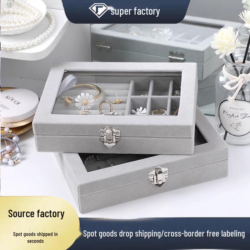 Velvet Flip-Top Jewelry Box - Dustproof, Transparent Storage for Rings, Earrings, Necklaces, and More - Anti-Oxidation Protection