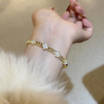 French Style Light Luxury Micro Inlaid Zircon Shell Lucky Clover Bracelet for Women with Exquisite Temperament and High-end Jewelry