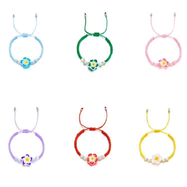 Flower Bracelet Handmade Soft Clay Woven Jewelry Adjustable Tropical Plumeria Wristband Bohemian Beach Party Accessories