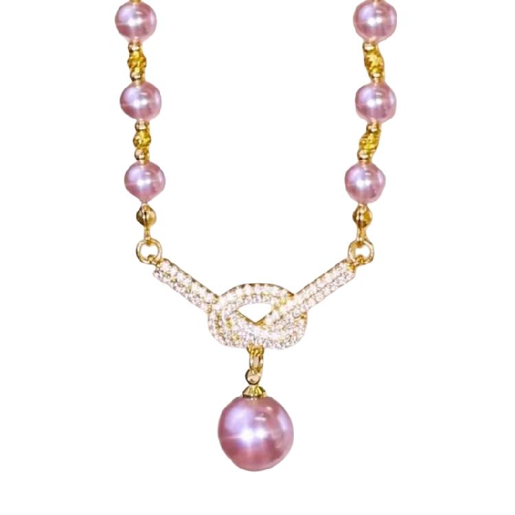 Crystal Studded Adjustable Pearls Necklace for Women Allergy Resistant Jewelry with Knot Detailing Evening Wear