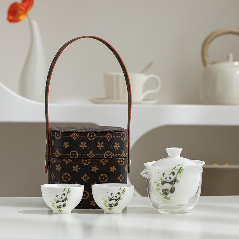 Shangqi Panda Bamboo White Porcelain Travel Tea Set