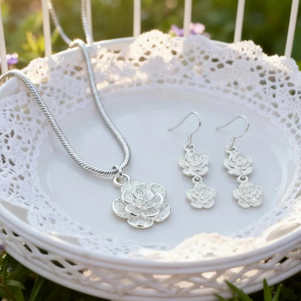 New Luxury Copper Unique Rose Flower Necklace Earrings for Woman Fashion Niche Designer Jewelry Sets Party Gifts