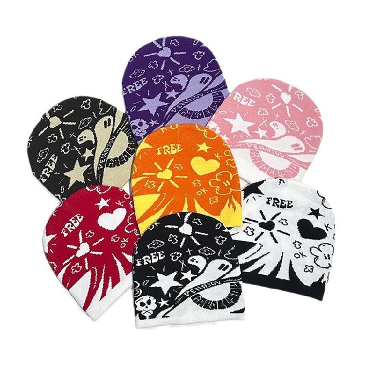 Handmade Crochet Hat Girl Skull Hat Double Side Jacquard Beanies Warm Skull Caps
