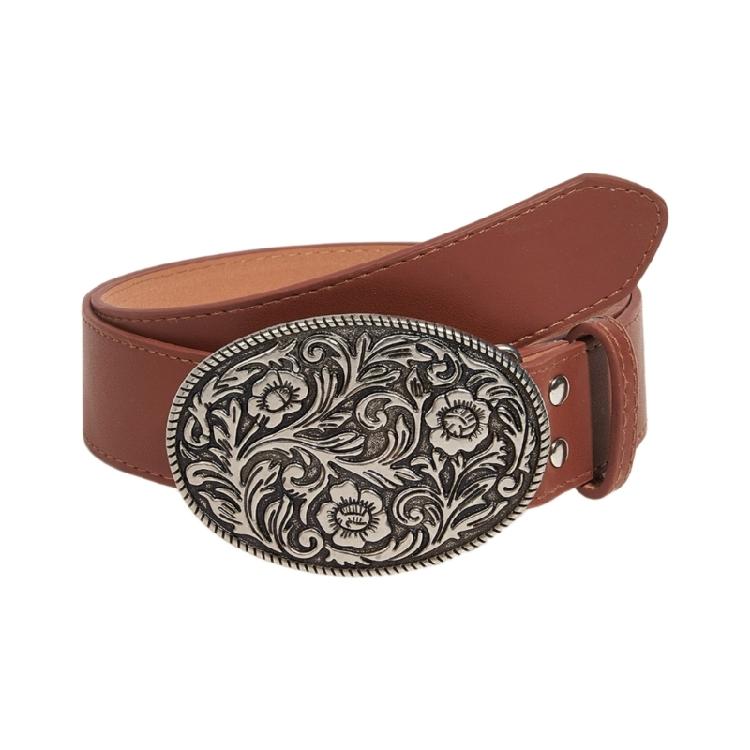 Wear Resistant Adult Waist Belts with Carved Buckle Female Decorative PU Belts