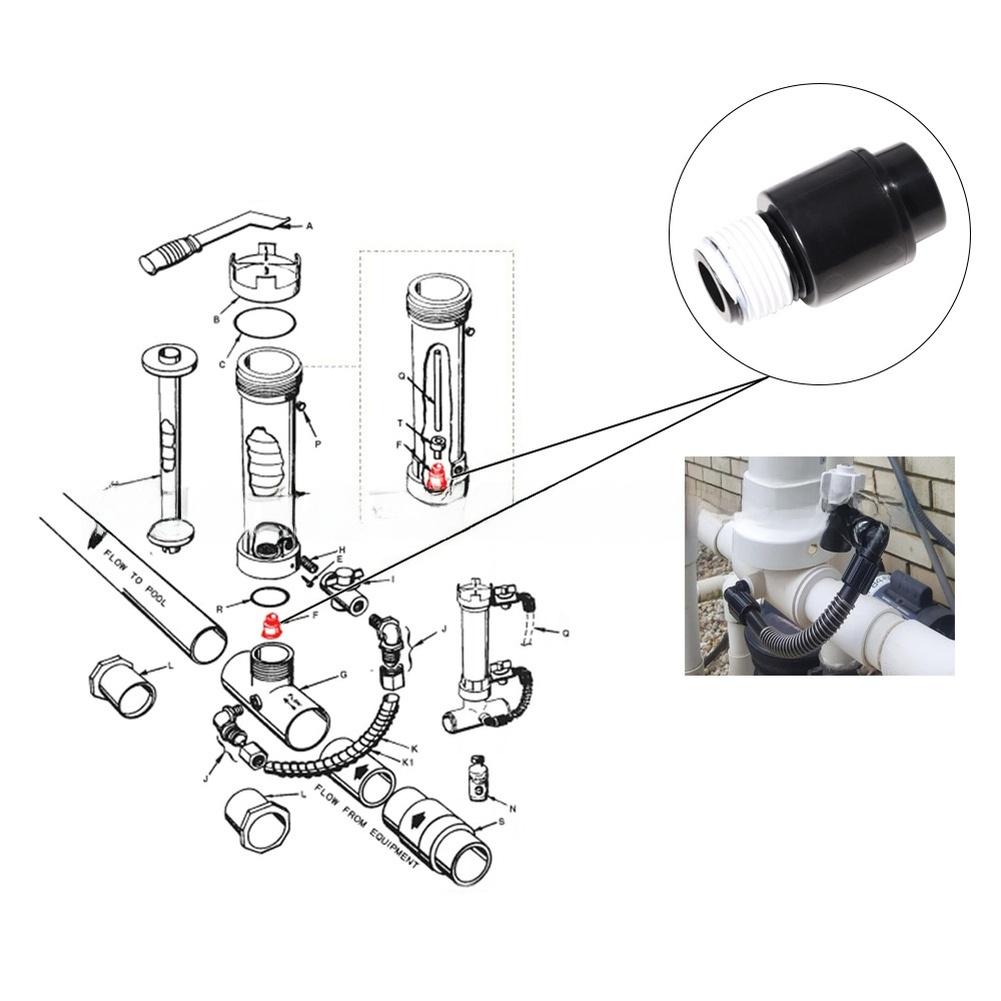 1PCS R172248 Check Valve With Tape Replacement PlasticFor Prevents Backflow In Pool Chlorinator For Rainbow 320 Pool Chlorinator