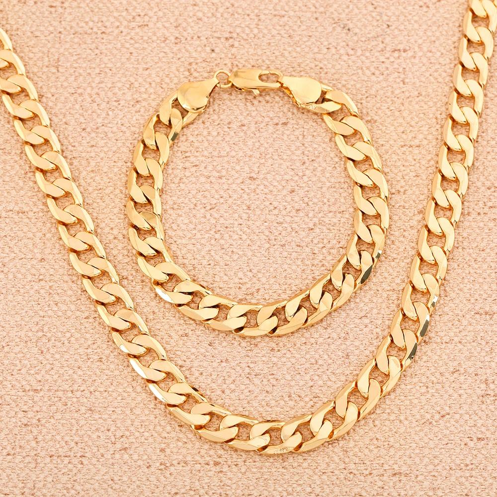 Copper 18K Gold Color Classic 6MM Chain Bracelet Neckalce for Women Men Wedding Jewelry Set