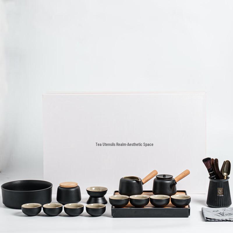 ModelBlack Pottery 15-Piece Side Handle Pot Set with Tea Tray (Gift Box)