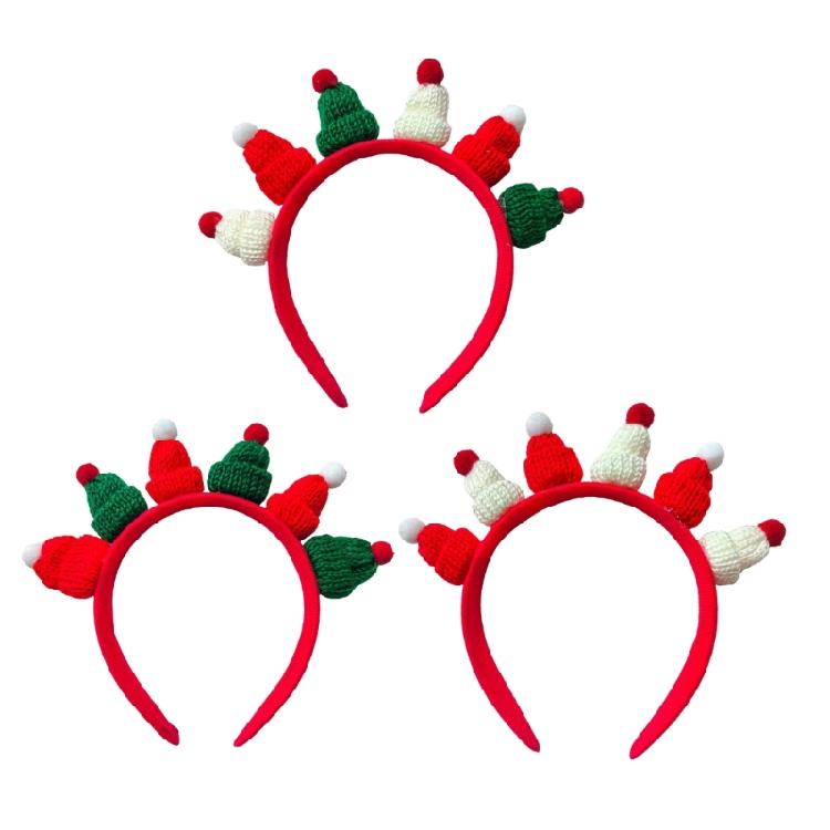 Knitting Christmas Santa Hat Headband Festival Props Hairhoop Family Gathering Headwear Holiday Celebration Headpieces