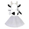 Package 4: 1Piece Cow Horns Headband, 1Piece Nose, 1Piece Bowtie, 1Piece Tail, 1Piece Skirt
