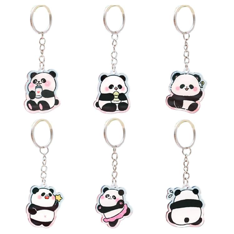 6pcs Stylish Panda Keychain Acrylic Keyring Bag Pendant Animal Lover Accessory Car Interior Decoration Handmade Present