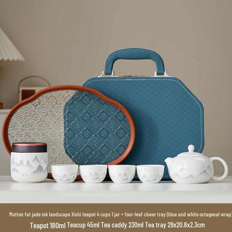 Chinese White Porcelain Kung Fu Tea Set - Ink Landscape & Xishi Pot