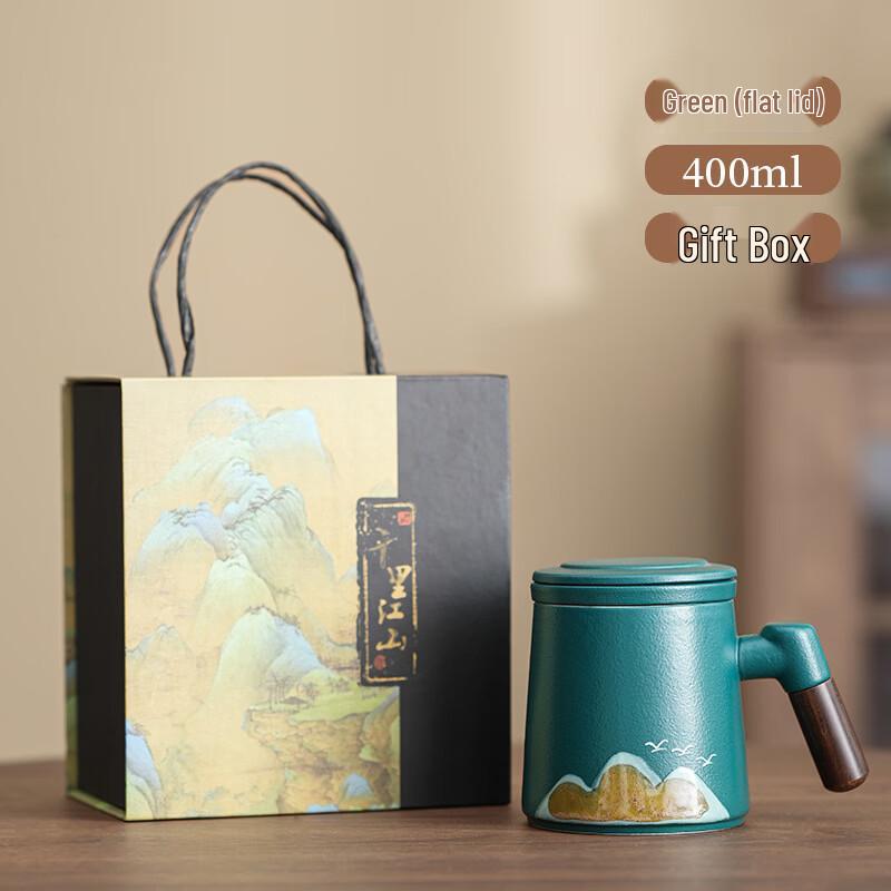 Chinese Style Green Ceramic Portable Office Mug