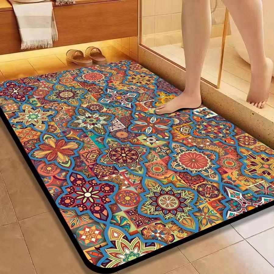 American Flower Diatom Mud Floor Mat, Bathroom Non-Slip And Dirt-Resistant Absorbent Floor Mat, Toilet Quick-Drying And Easy To Take Care Of
