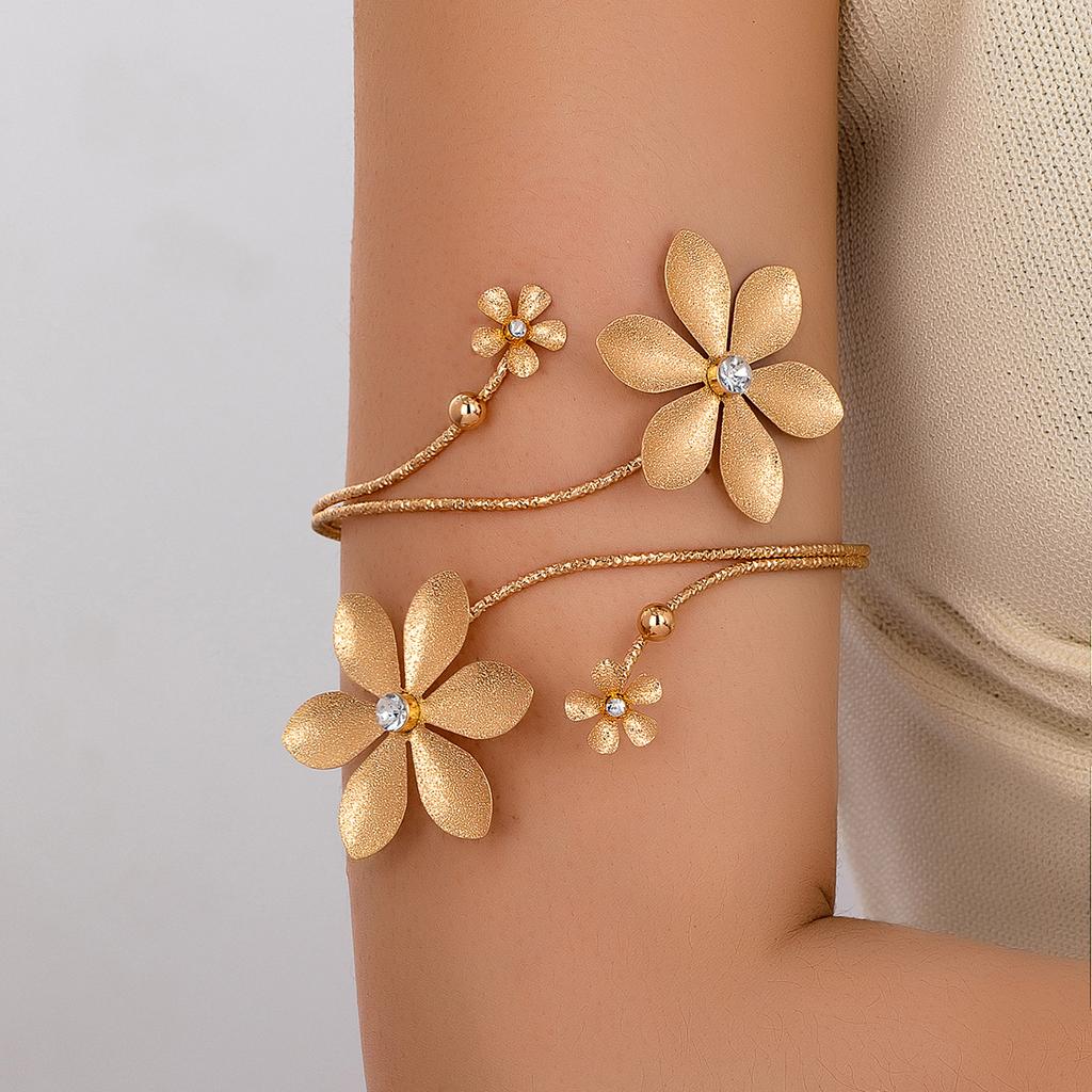 Temperament Retro French Flower Arm Ring Geometric Line Rhinestone Flower Upper Arm Bracelet Female Niche
