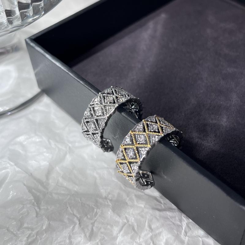 Italian Cloth Lace Brushed Silk Craft Court Style Diamond Set Ring Women'S Weave Pattern Carved Gold Diamond Ring Ring