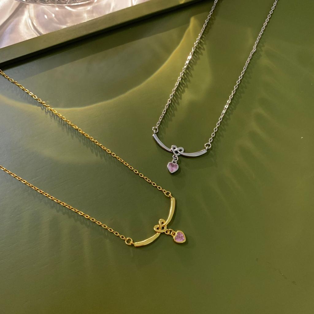 Korean Version Of Girl'S Heart Knotted Love Necklace Female Niche Light Luxury High Sense Hollow Heart-Shaped Clavicle Chain Temperament Neck Chain