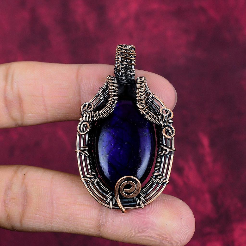 Purple Fire Labradorite Pendant Handmade Copper Wire Wrapped Gemstone Jewelry