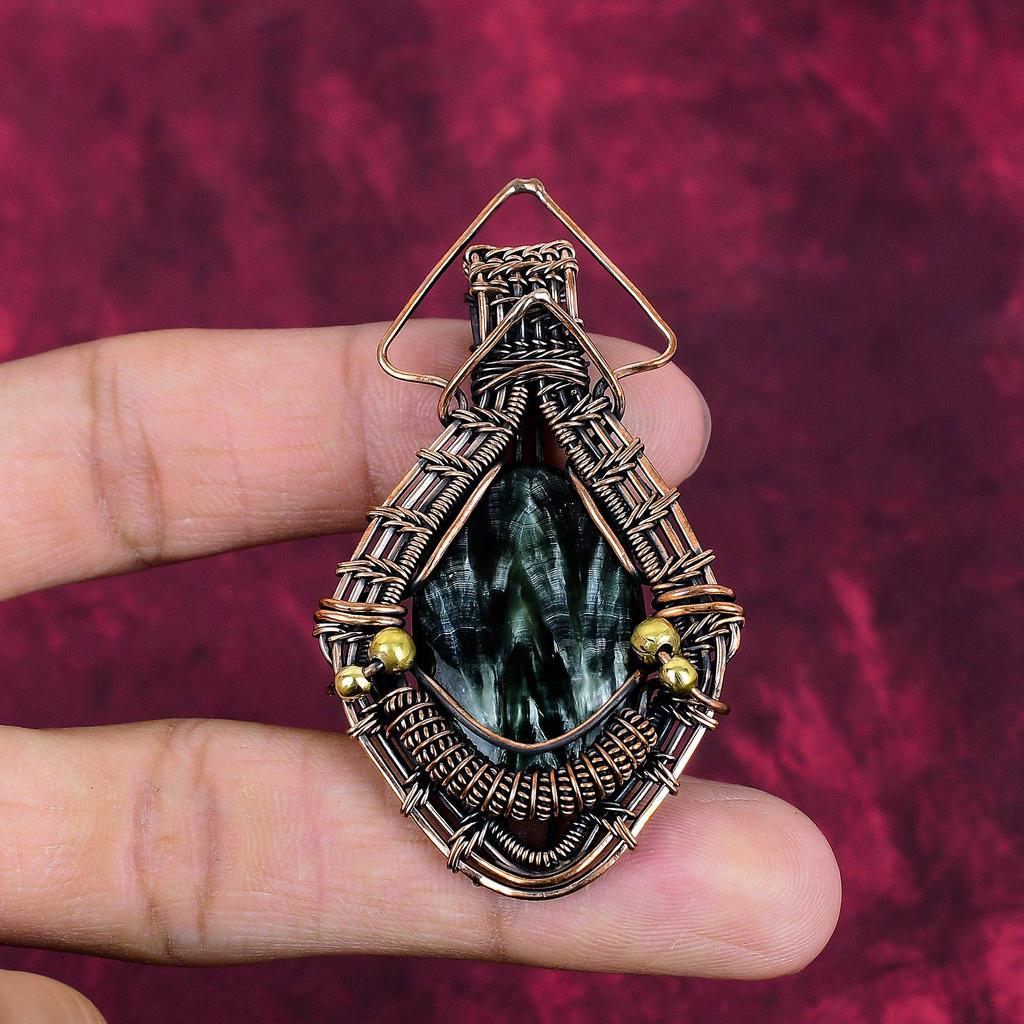 Seraphinite Gemstone Pendant Copper Wire Wrapped Jewelry Handmade Amazing Pendant