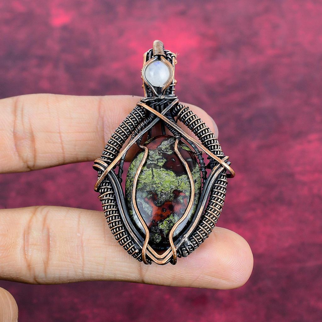 Dragon Bloodstone Gemstone Pendant Copper Wire Wrapped Rainbow Moonstone Jewelry