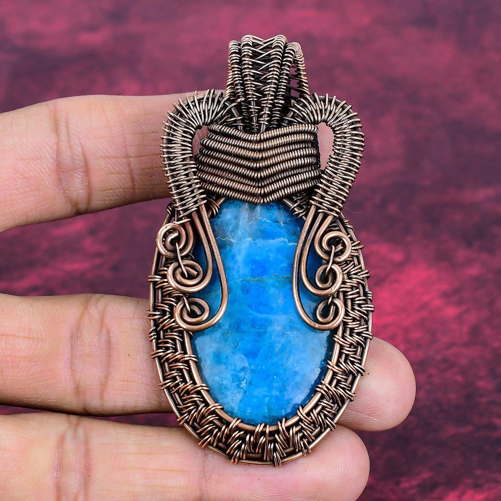 Neon Apatite Pendant Handmade Real Gemstone Pendant Copper Wire Wrapped Jewelry