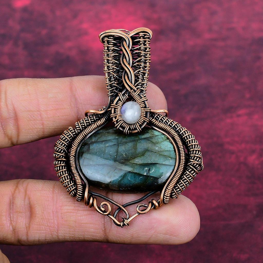 Labradorite Gemstone Pendant Copper Wire Wrap Jewelry Rainbow Moonstone Pendant
