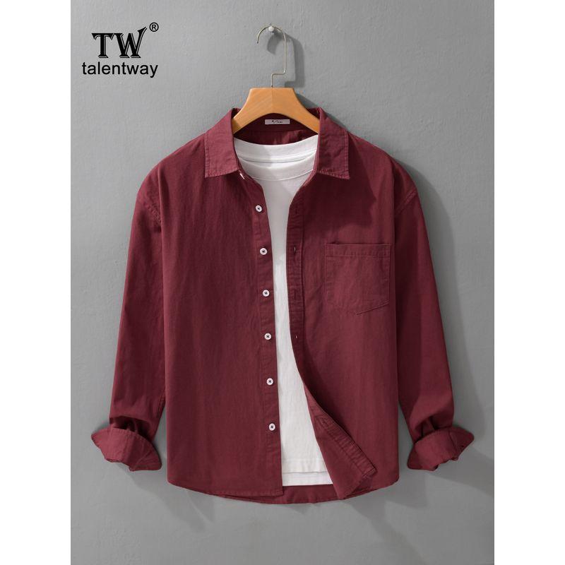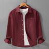Spring and Autumn Simple Retro Long-Sleeved Shirt Men's Loose Versatile Casual Top Festive Burgundy 100% Pure Cotton
