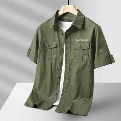 Summer American-Style Casual Short-Sleeve Shirt for Men, Loose Fit for Big and Tall Guys, Pure Cotton Work Shirt Jacket with Heavy Texture