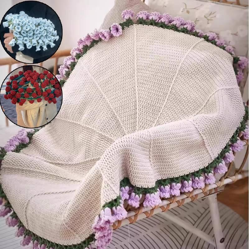 Finished Crochet Flower Rose Bouquet Blanket Handmade Romantic Knitted Rose Floral Bed Throw Blankets Birthday Wedding Gifts