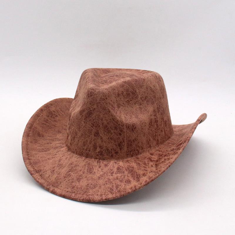 Upturned Edge Black European And American Top Hat Western Cowboy Hat Textured Jazz Hat Imitation Leather Felt Hat Cross-Border Top Hat For Men And