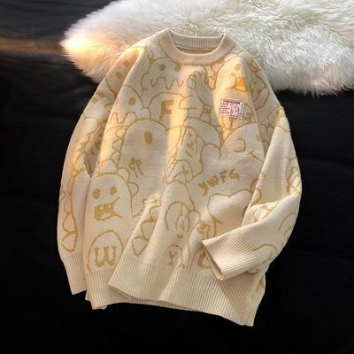 51 Hip-Hop Vibe Trendy Brand Fun Print Crew Neck Couple Knit Sweater Men's Winter Thickened American-Style Soft Sweater