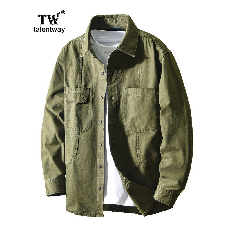 TW Spring and Autumn American Vintage Cargo Shirts Jacket Men's Loose Fat Man Plus Size Top Thin Outerwear Pure Cotton