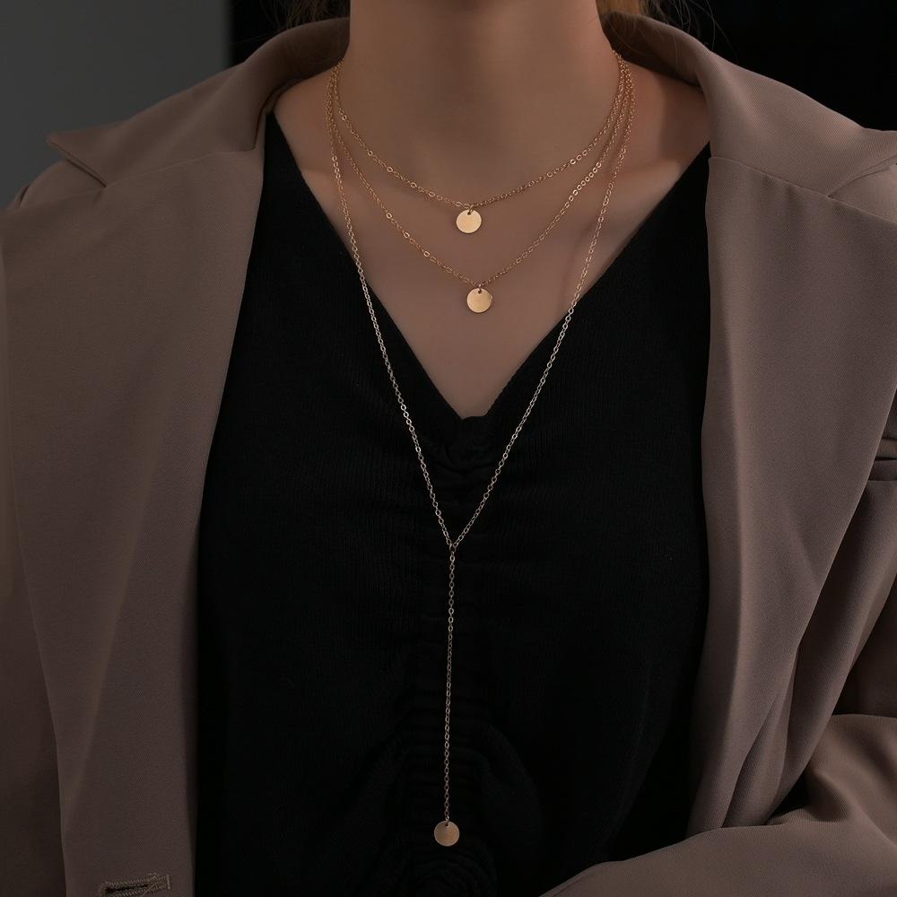 New Long Multi-layer Necklace Female Personality Sexy Geometric Disc Pendant Neck Chain Collarbone Chain